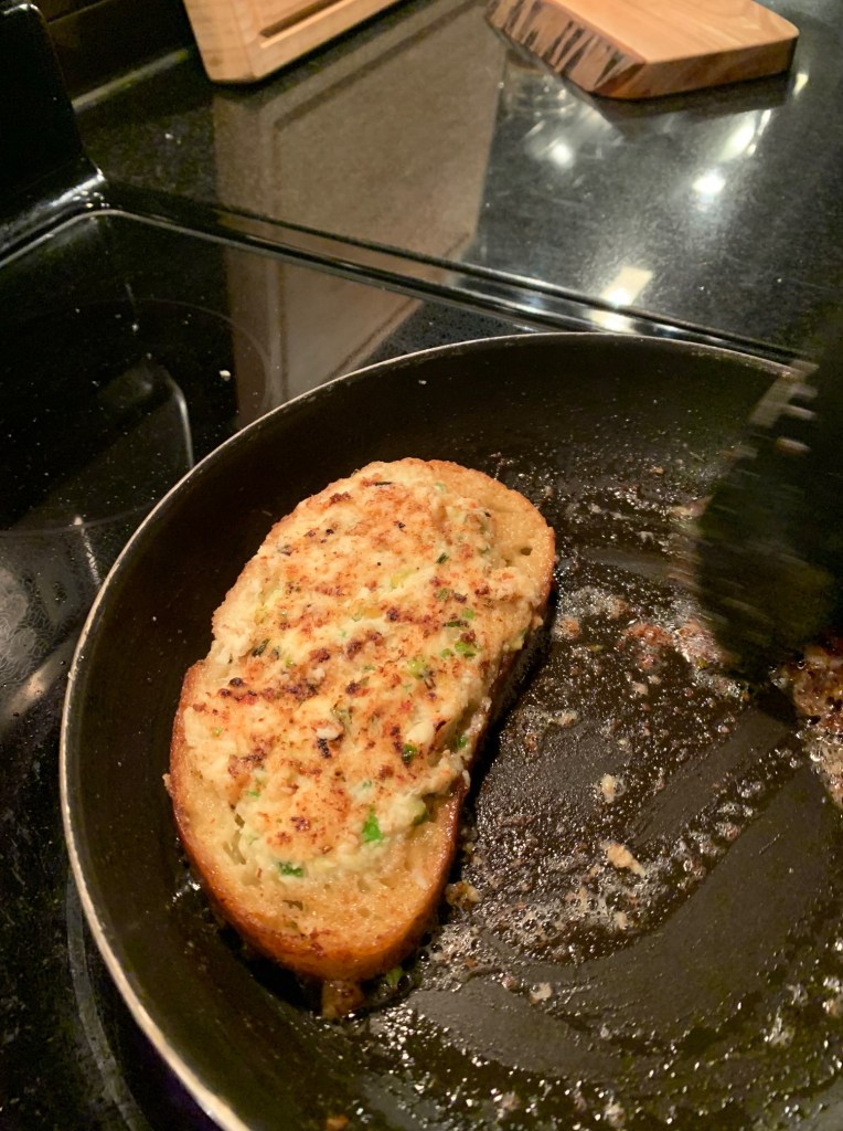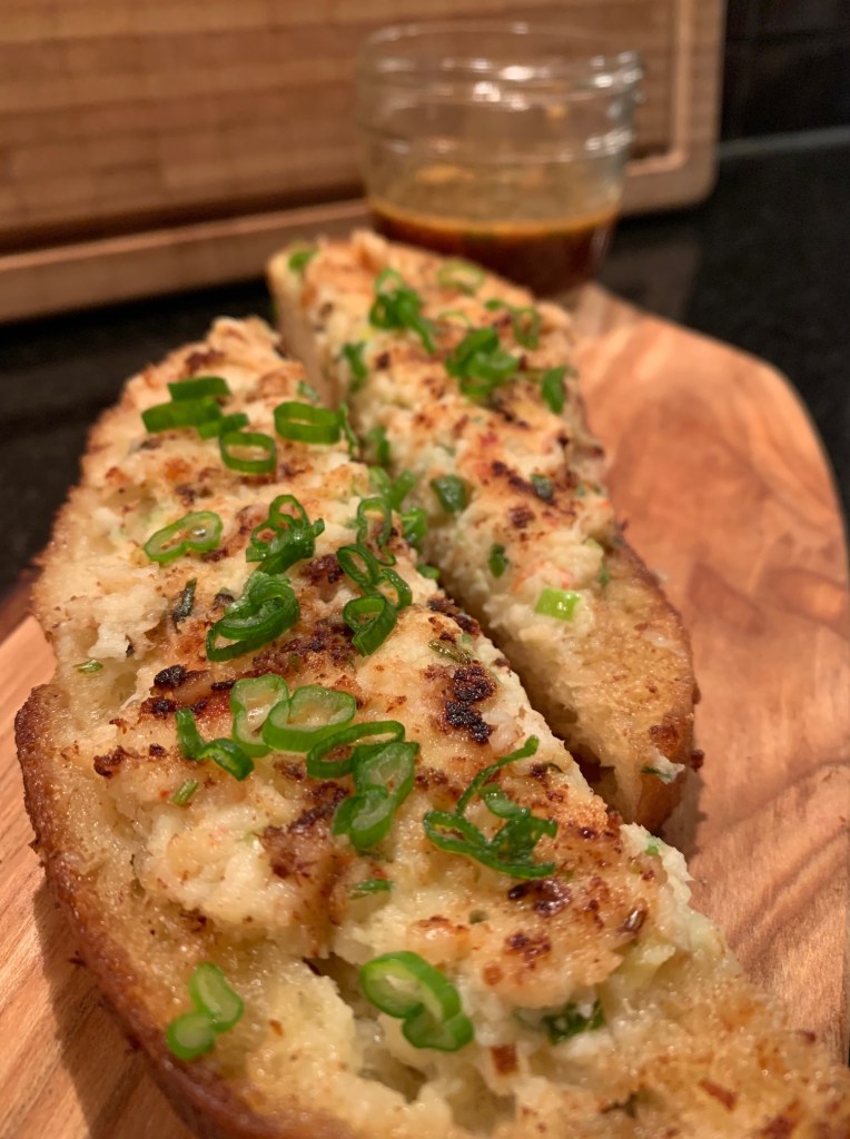 I take my inspiration from the Chinese dim sum feature, shrimp toast, but I’m not someone who deep fries anything, let alone a sandwich. Enter Martha Stewart’s Japanese shrimp toast, which serves as a guide and I add my own twist.
