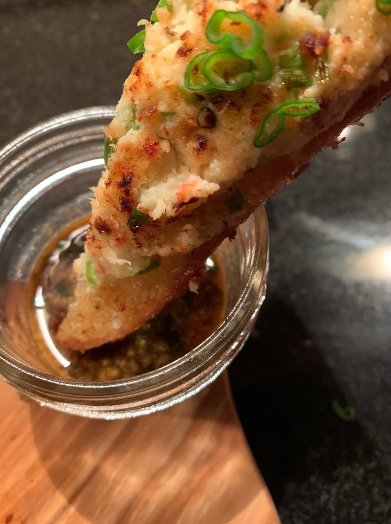 It’s salty, savoury, and thanks to the fry treatment, rich at the same time. Like many sandwiches, the sum is definitely greater than the parts. Sliced in strips with the dip it could double as an excellent appetizer course.