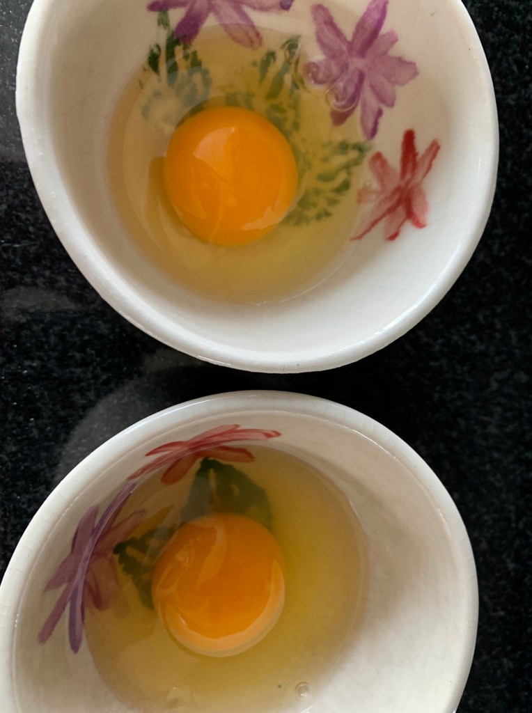 I’m making two sandwiches today so I’ve cracked two eggs into their own bowl.