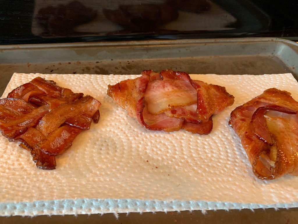 Egg squared! Get that bacon out of the oven and let it rest on paper towel.