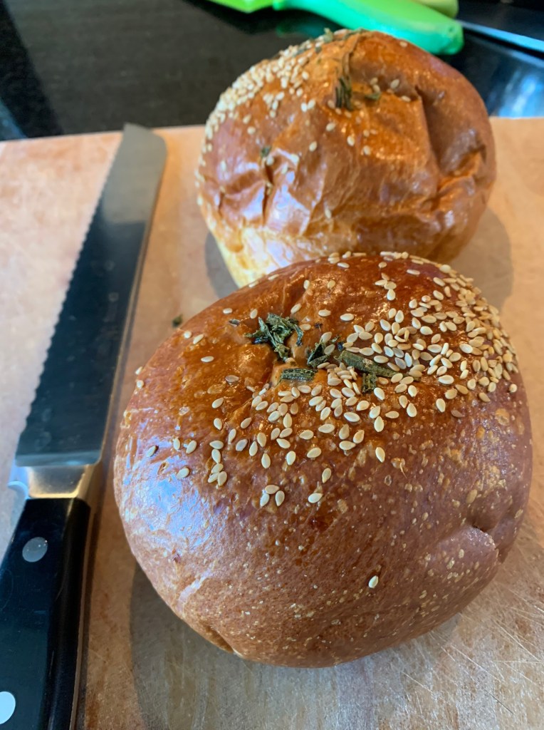 Today, I’m breaking out of my routine and creating an epic burger—the first one of the year: special sauce, “shreddice” (shredded lettuce), patty, a blanket of white cheddar, homemade baked onion rings (!!), yellow mustard, and a lovely Ace brioche bun. I never do this, so this is a project.