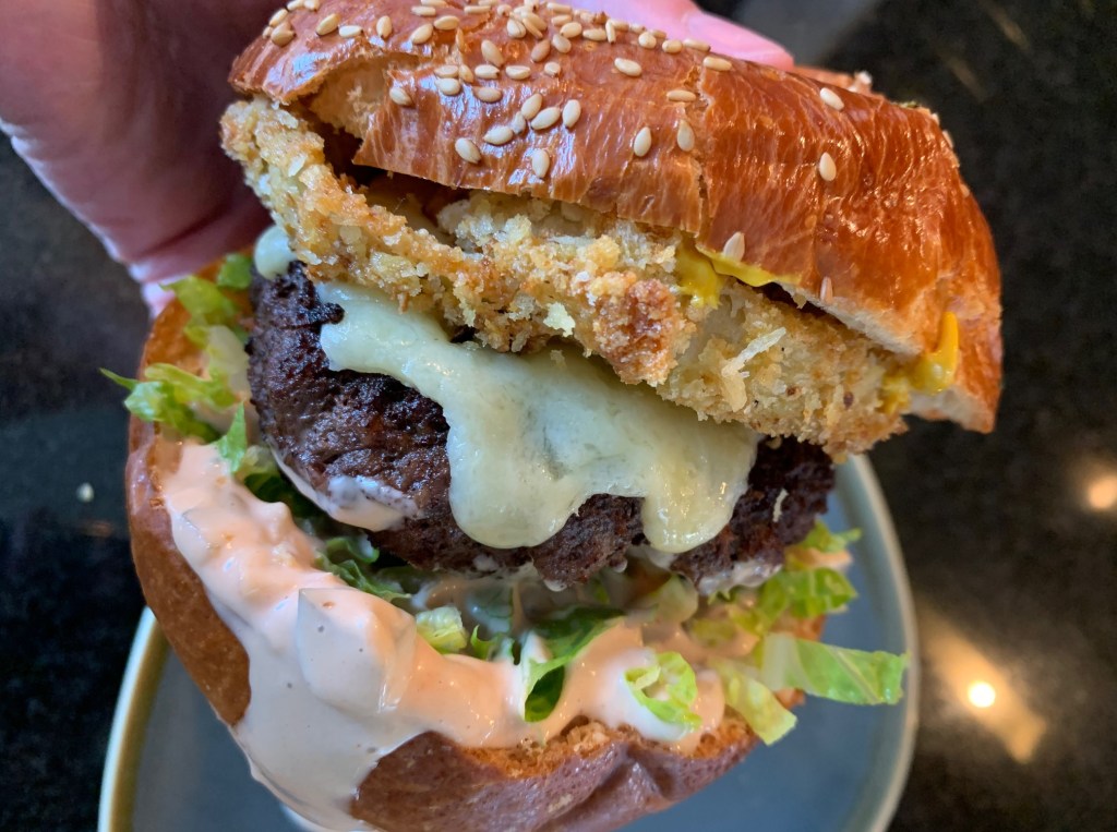 A burger is a rare treat in this household and, I’ve gotta say, I’m usually quite boring when it comes to burger preferences: patty, American cheese, pickles, onions, lots of mustard.