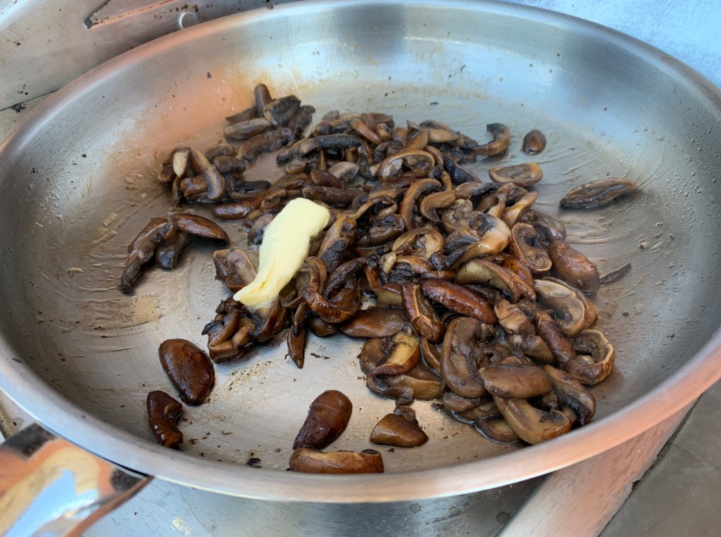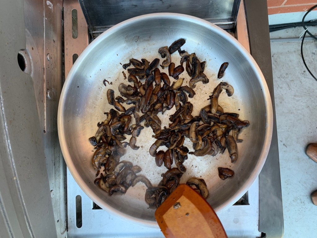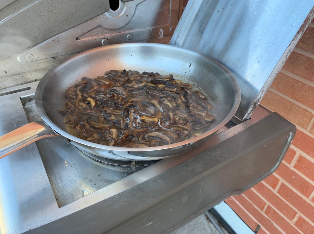 Let’s get to work. I’m setting up my station at the BBQ, which has a side burner that is perfect for sauteeing my mushrooms and the grill will turn my average bread slices into a crispy, rustic canvass for the mushroom and potted trout toasts.