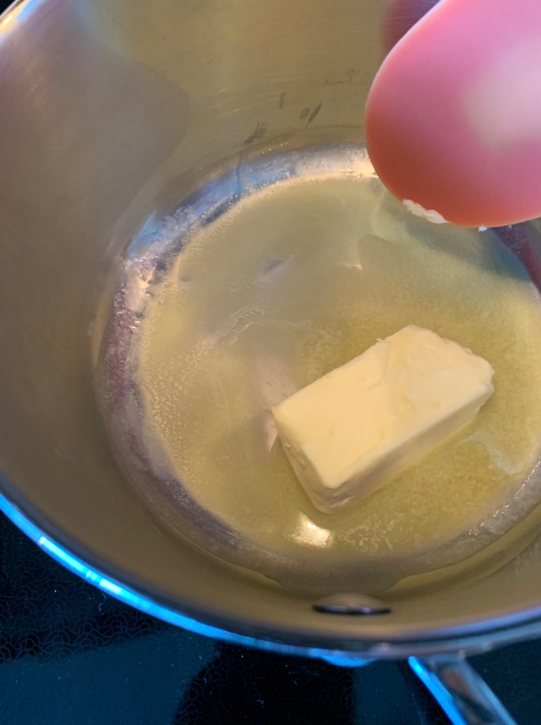 Add the flour and stir until it’s bonded with the butter (1 minute or 2).