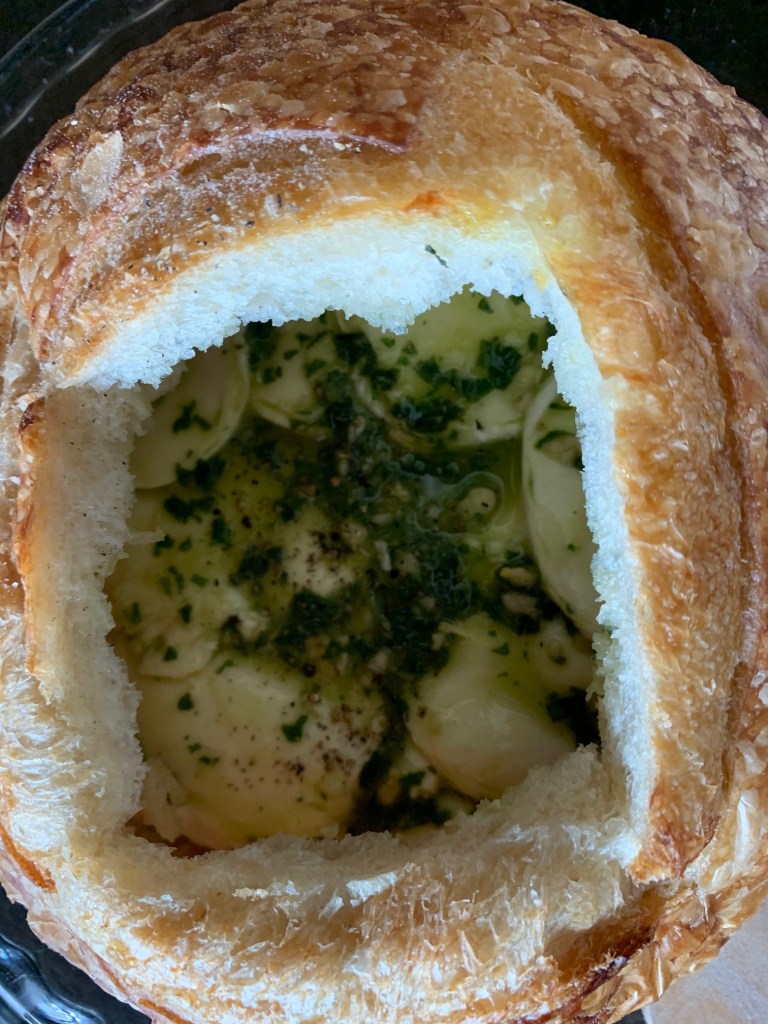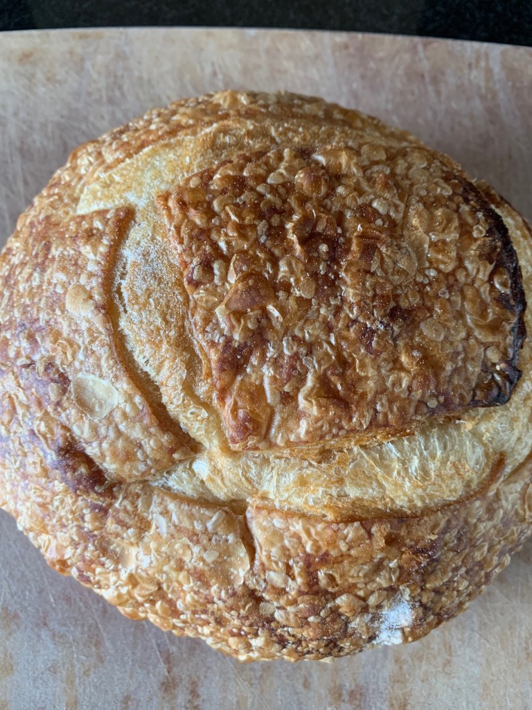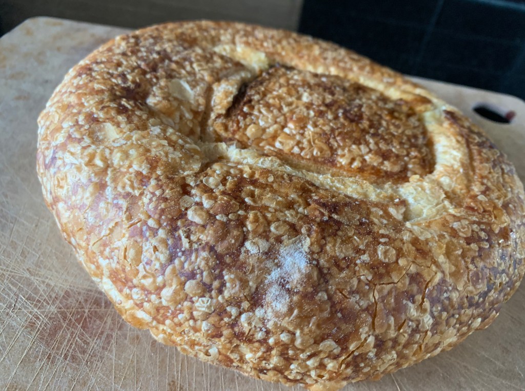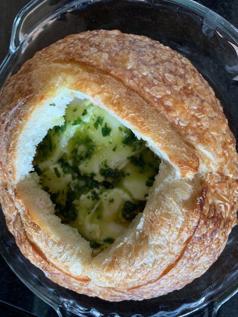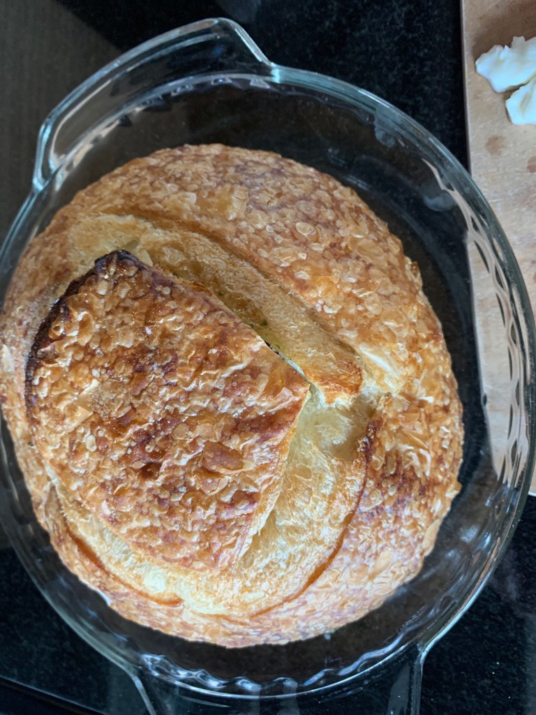 For my pesto caprese loaf, I’m starting with a beautiful fresh sourdough boule from Fred’s bread.