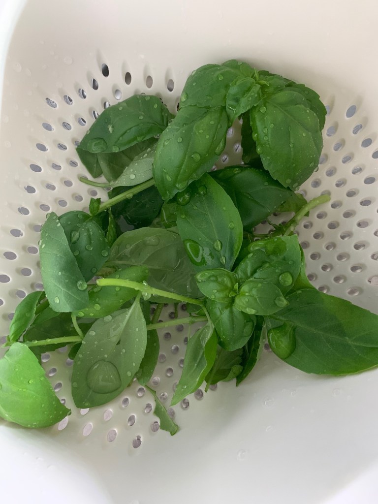 I’ve picked some fresh homegrown basil. It looks and smells like summer.