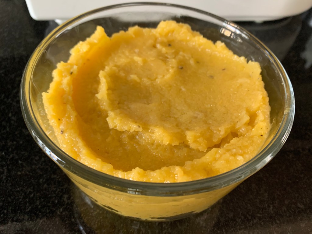 The squash is perfectly pureed and gets spooned into a bowl that will go into the fridge for when I’m ready to make my tartines. The leftovers will get incorporated into mashed potatoes later this week.