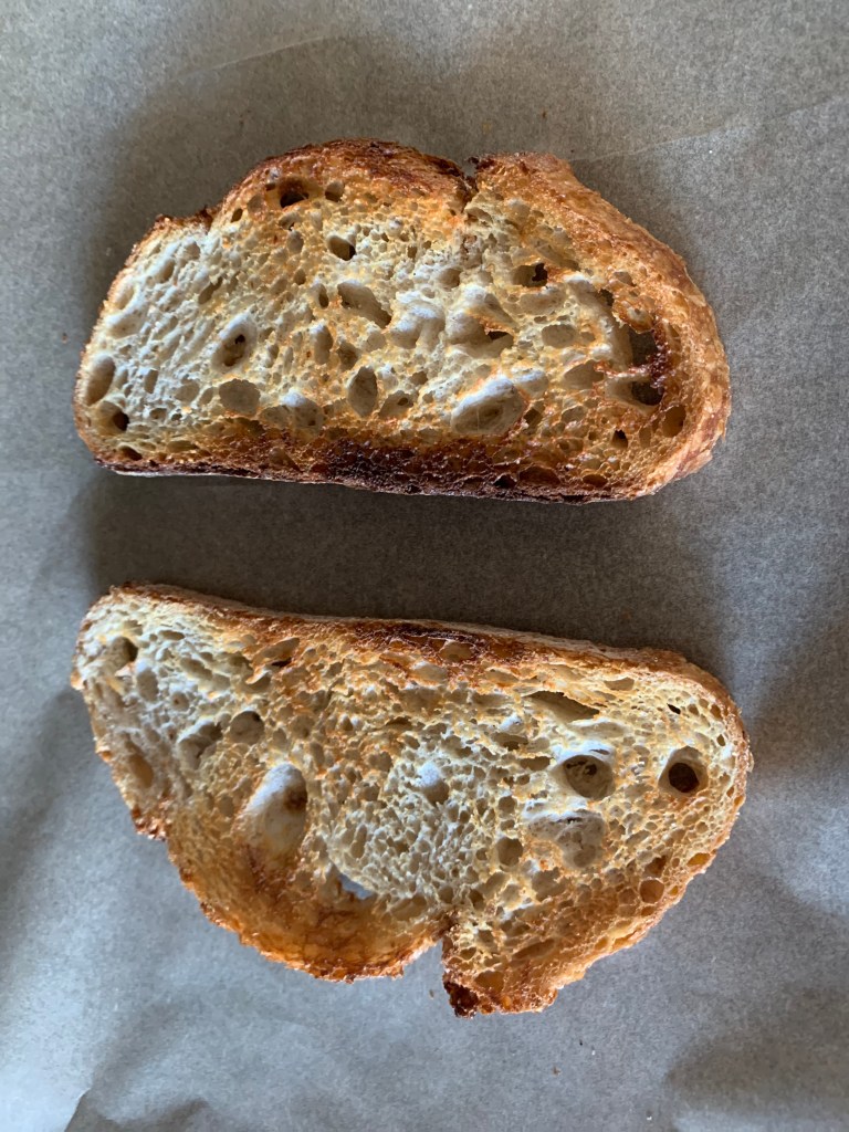 Time to build my tartines. Bread goes in the toaster until it’s golden brown and firm enough to host the ingredients.